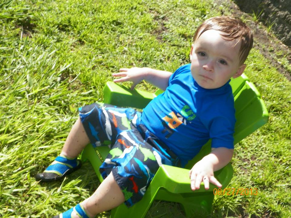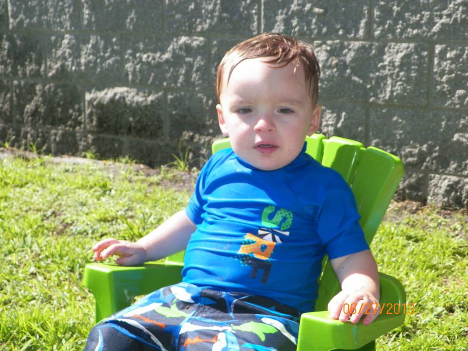 Liam had water day at school on Thursday. This is a new treat that his daycare started for the summertime and he is LOVING it. Here are a few pics they took of him catching some rays post – water fun.