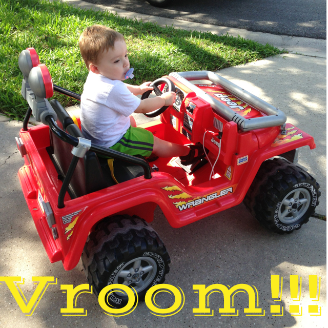 I feel like I say this all the time these days, but Liam is growing incredibly fast. In fact, while we had kinda jumped the gun & bought him a power wheels jeep a few months ago, he was too scared to even try to drive it, then. But, we left it in the garage & would let him sit in it whenever he wanted. Well, Sunday he asked to DRIVE the jeep! This was huge news in Casa de Murphy….lol. Daddy cleared the driveway and off he went. We couldn’t believe our eyes. Stephen had to show him how to press the pedal and yes, he didn’t go too fast (yes, this made me happy…lol), but he did it. Most of all, he wasn’t scared a bit. He was laughing! It was really cute.